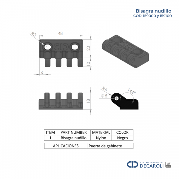 • COD-159100.. Bisagra nudillo grande 65mm.